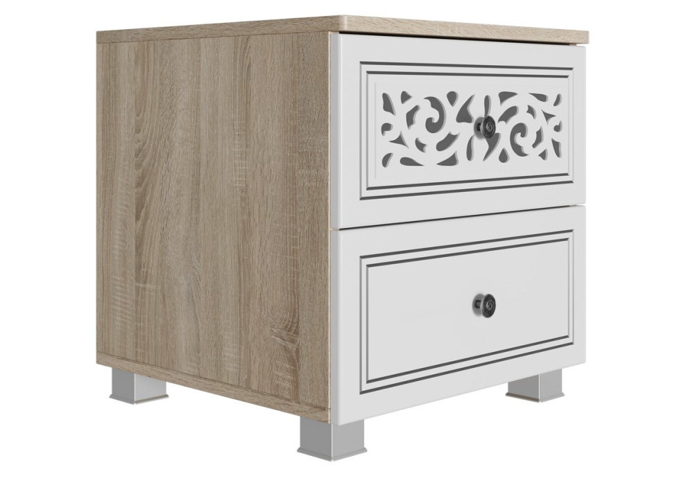 Материал: ЛДСП, МДФ Тумба оснащена 2мя ящиками на шариковых направляющих полного выдвижения.