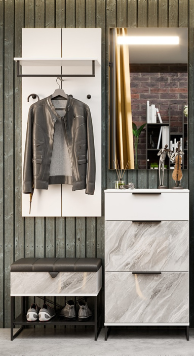 Материал: ЛДСП, металл, искусственная кожа Цвет: Статуарио, белый глянец, чёрный