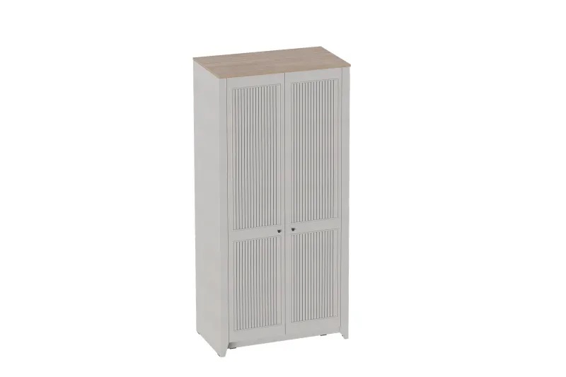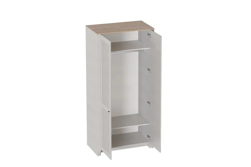 Шкаф 2 дверный Валенсия с зеркалом выполнен из (ЛДСП) в комбинации Дуб натуральный светлый / Персидский жемчуг.