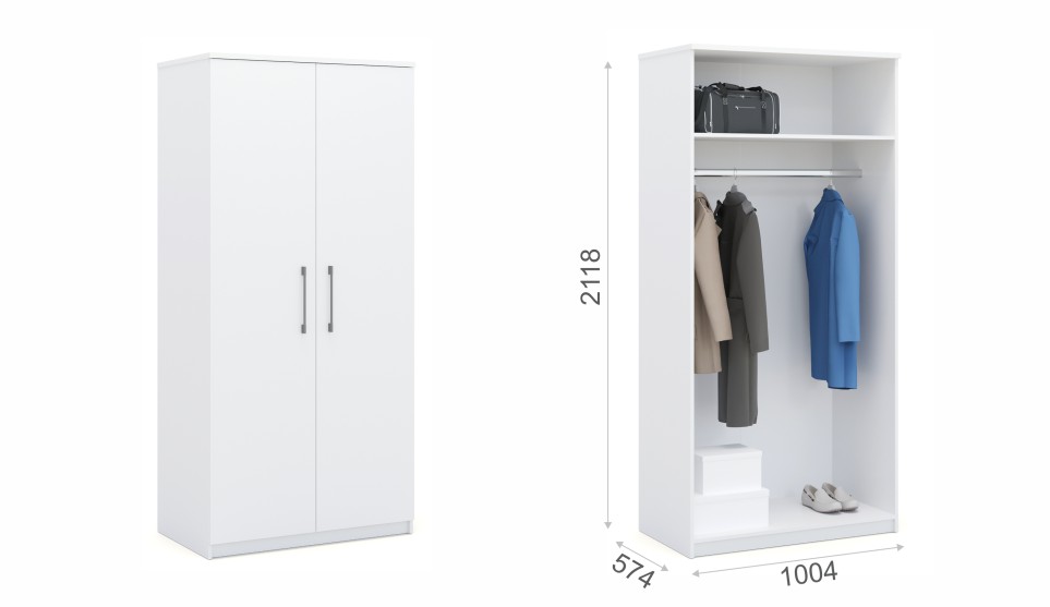 Классический распашной двухдверный шкаф - компактное и универсальное решение для хранения вещей. Выполнен в стиле минимализм: строгие линии, идеальные пропорции, отсутствие декора. Идеально компонуется со всеми модулями системы Аврора.