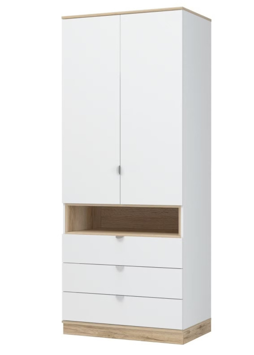 Шкаф 2-х дверный Юкки ШК3Я 900 стильное решение для современного интерьера. Белоснежный фасад с корпусом древесного оттенка создаёт интересное сочетание. Шкаф 2-х дверный Юкки ШК3Я 900 имеет очень функциональное наполнение.