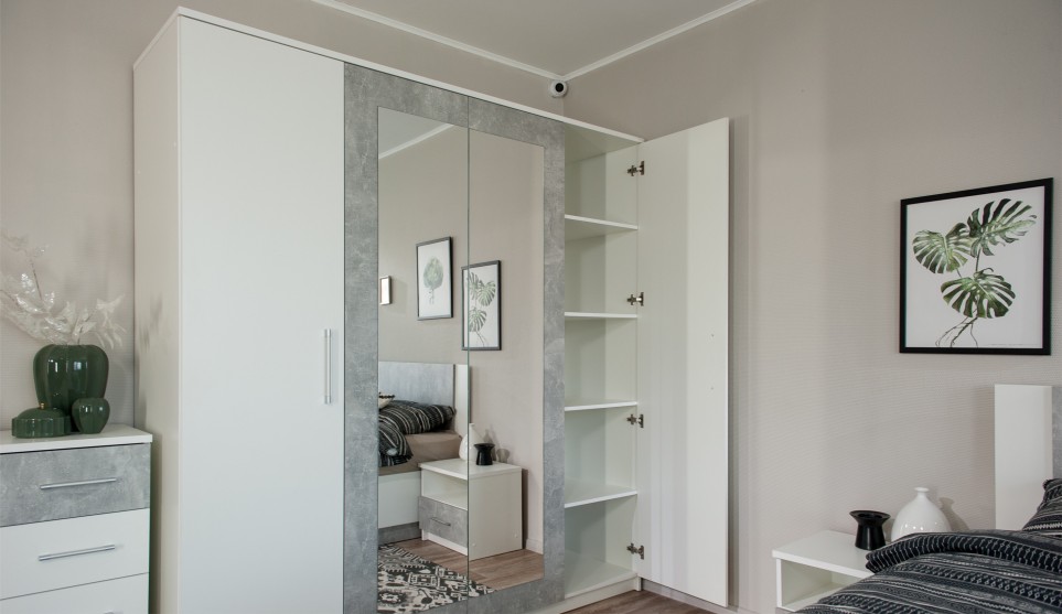Классический распашной четырехдверный шкаф выполнен в стиле минимализм: строгие линии, идеальные пропорции. Нейтральные цвета шкафа подойдут для любого стиля интерьера, их можно сочетать со множеством ярких и насыщенных оттенков тем самым полностью преображая пространство. Зеркала на центральных фасадах сделают спальню светлее и просторнее. Идеально компонуется со всеми модулями системы Аврора. Мебель выполнена из высококачественных материалов.