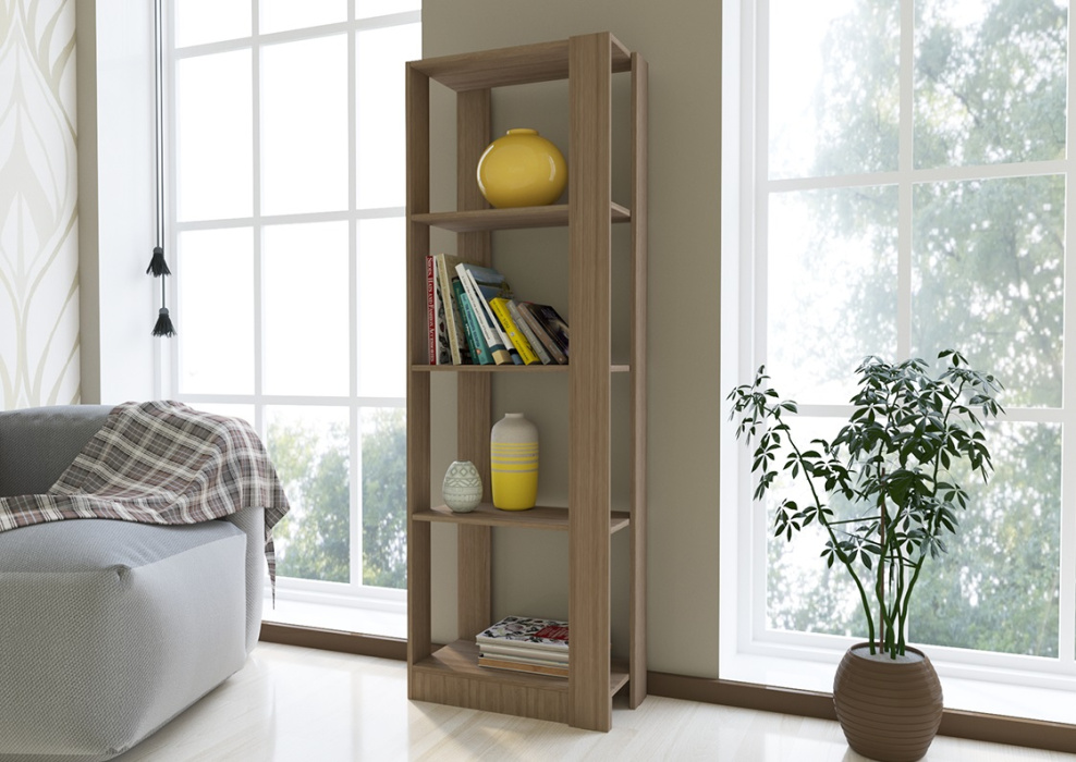 Оригинальный дизайн стеллажа №3А прекрасно будет смотреться в комнатах, оформленных в стиле лофт. Его сильная сторона – наличие четырех объемных высоких полок, на которых можно хранить даже габаритные предметы.