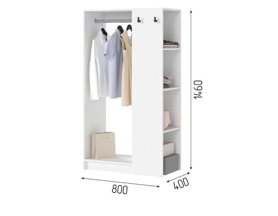 • Открытая секция со штнагой идеально подходит для хранения одежды на вешалках, обеспечивая быстрый доступ к вещам.