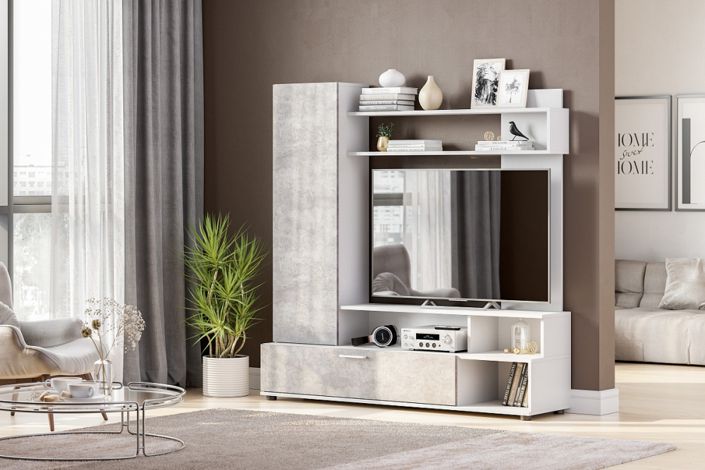 Данное изделие относится к линейке «NN-Мебель». Эта мебель создается на тех же уникальных станках, теми же профессиональными сотрудниками с теми же принципами производства, что и вся мебель на фабрике. Она так же экологична, долговечна и безопасна, а дизайн и функционал нисколько не уступают полюбившимся всем коллекциям бренда «SV-Мебель», от которого ее отличает только гарантия 24 месяца и роликовые направляющие в выдвижных ящиках, что компенсируется максимально доступными ценами на данную линейку. Максимально допустимая нагрузка на полки — 5 кг. Гостиная зеркально НЕ собирается!