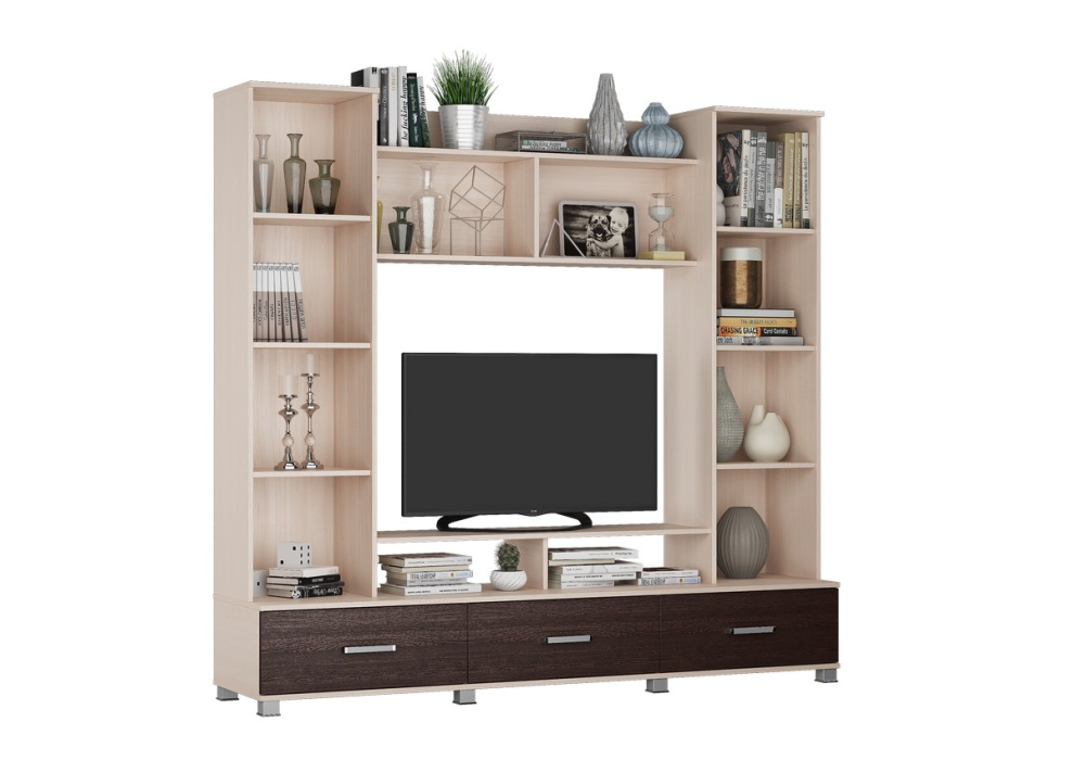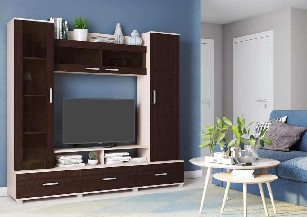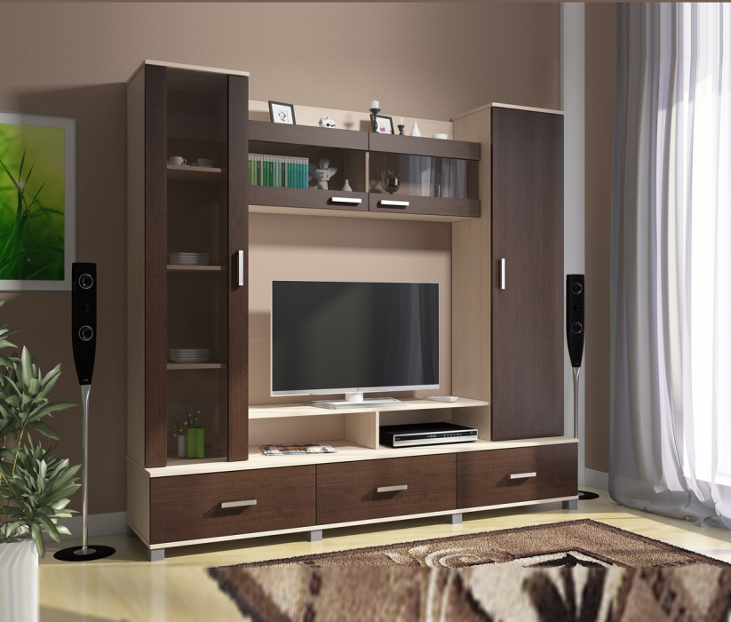 • Фасад и корпус стенки изготовлены из ламинированной ДСП