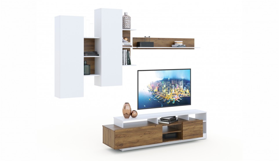 Стенка "Невио-2" Дуб крафт золотой/белый