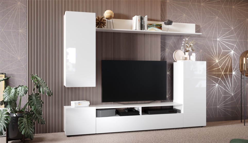 Стенка Лия выполнена в современном европейском стиле. Её дизайн совмещает в себе актуальные тренды: белый глянец, скругленные фасады МДФ, отсутствие лицевой фурнитуры. Белый цвет отлично сочетается со всей цветовой палитрой, что позволяет создавать яркий интерьер и компоновать с другой мебелью. Стенка включает в себя нишу под ТВ с открытыми и закрытыми полками для размещения приставок, медиа устройств, книг и элементов декора. Дополнительно гостиная комплектуется точечной подсветкой.