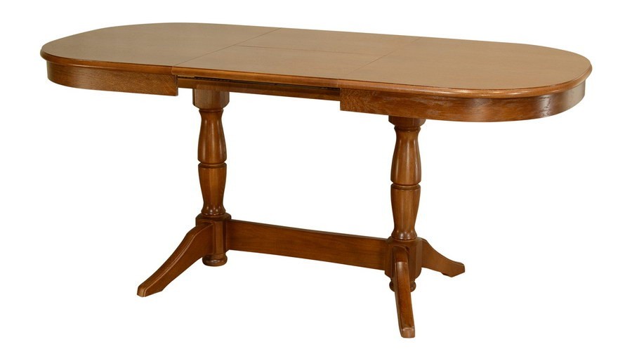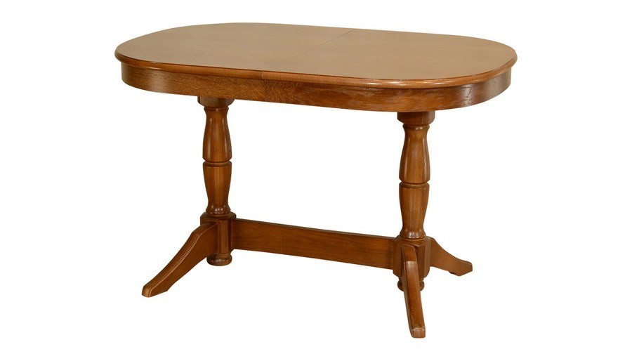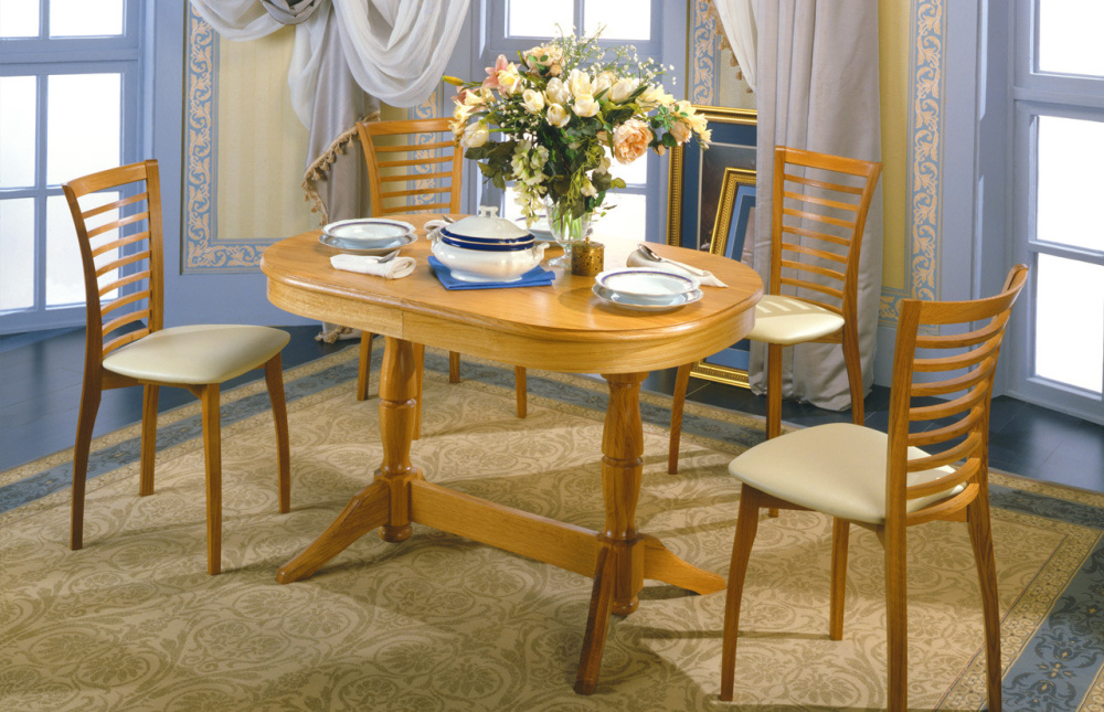 Модель держится на двух фигурных округлых опорах, укрепленных проножкой. Их устойчивость обеспечивается наличием широких оснований и слегка изогнутых лап (по паре у каждой ноги). Согласно популярному сегодня учению фэн-шуй, именно овальные столешницы способствуют привлечению в дом счастья и благосостояния.