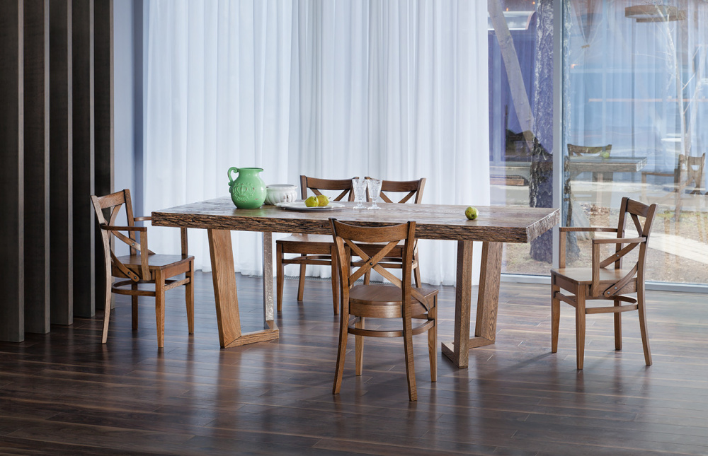 Удобство стола обеспечивается благодаря его материалу. Массив дуба – экологически чистый, прочный и надежный, долговечный. Красивый натуральный рисунок дерева дополняется натуральными красителями, так что такая мебель не выделяет посторонних запахов.Сама конструкция стола максимально удобна. Ножки слегка скошены к центру, между ними нет дополнительных перекладин, так что под столешницей достаточно свободного места.