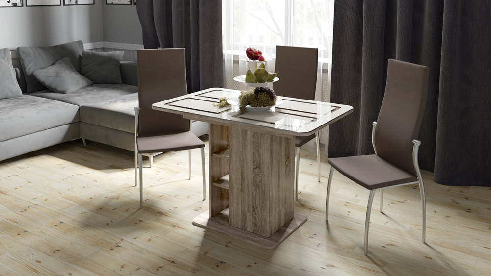 - Дуб Сонома трюфель/Стекло бежевое с рисунком
