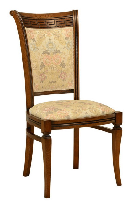 Стул Сенатор выглядит добротно, массивно и респектабельно. Такая модель способна добавить интерьеру гостиной, кабинета или столовой основательности. Верхняя часть каркаса чуть отклоненной для удобства назад мягкой спинки декорирована резьбой в виде античного орнамента. Резьба украшает и другие деревянные элементы – царгу и точеные части чуть сужающихся к низу изящно изогнутых ножек.