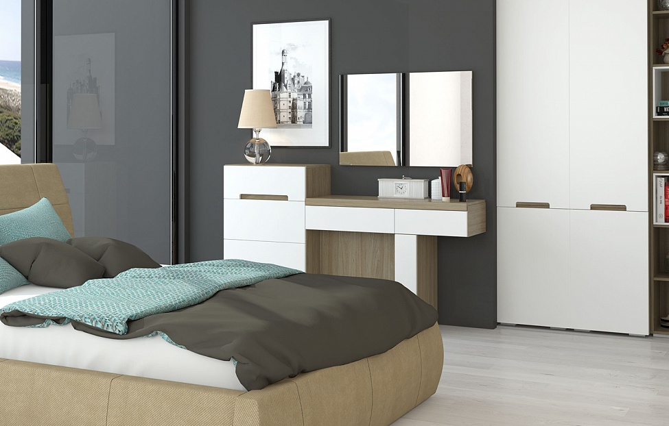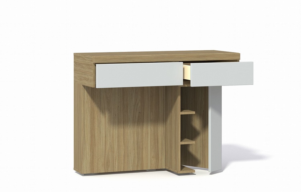 Корпус выполнен из ЛДСП в цвете Швейцарский Вяз Фасады - МДФ в белой матовой пленке
