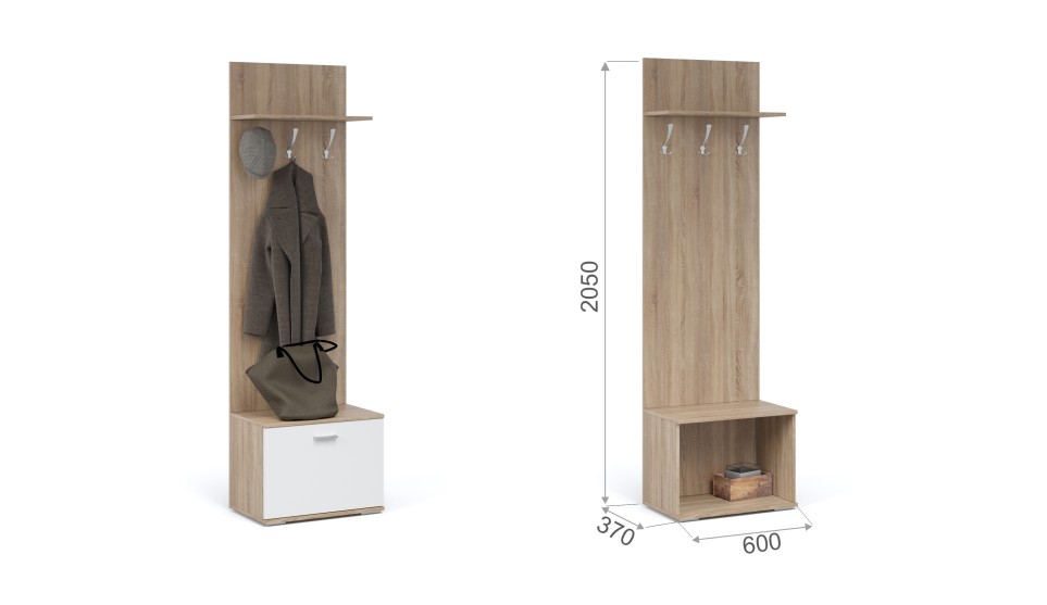 Модуль укомплектован полкой для головных уборов и крючками для одежды. В нижнем отделе секции находятся шкафчик для хранения различных принадлежностей для обуви. Нейтральные цвета корпуса и фасадов всегда будут актуальны, создают особый комфорт и уют. Идеально компонуется со всеми модулями системы Виола.