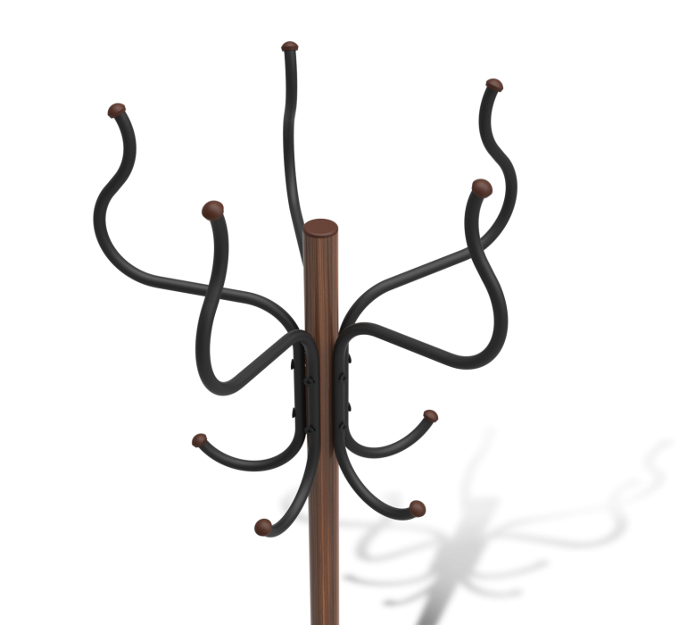 - Выполнена из металлической трубы, диаметром 28 мм; стойка, диаметром 16 мм; крючки - 10 мм;