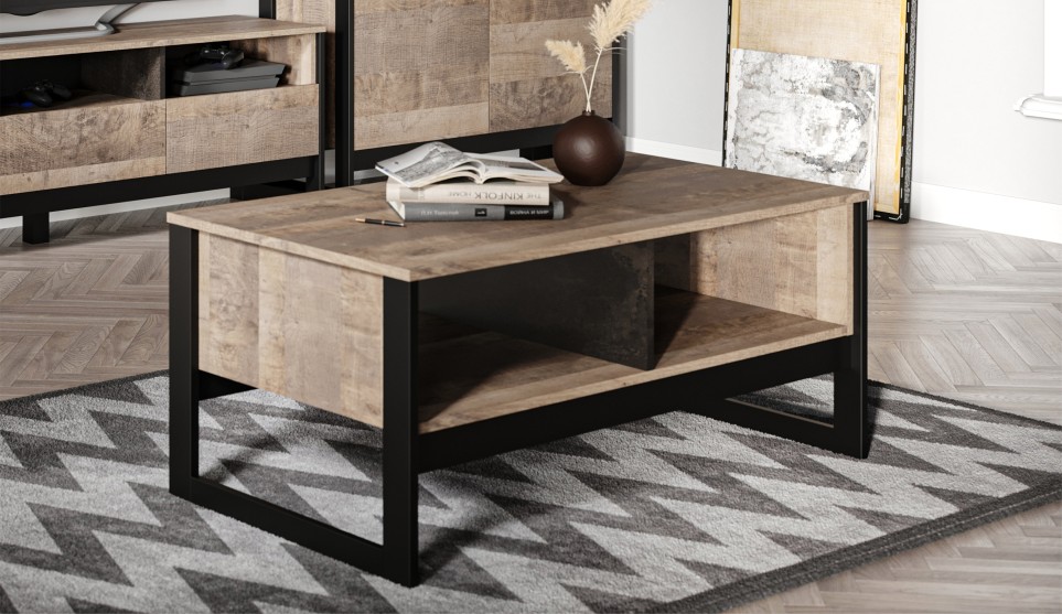 Стол журнальный "Стокгольм" Дуб гранж песочный/железный камень