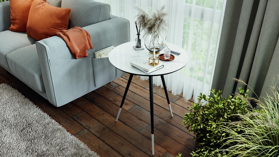 Декор. Столик имеет круглую форму столешницы, что делает его компактным и удобным для использования. На стеклянную поверхность нанесен рисунок, имитирующий мрамор, а глянец столешницы прекрасно отражает солнечные лучи. За счет классического сочетания черного и белого цвета, декор опоры выглядит по-настоящему стильно и оригинально и идеально гармонирует со столешницей.