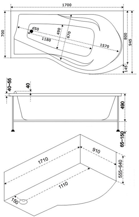 Комплектация ванны: ванна + каркас + слив-перелив.