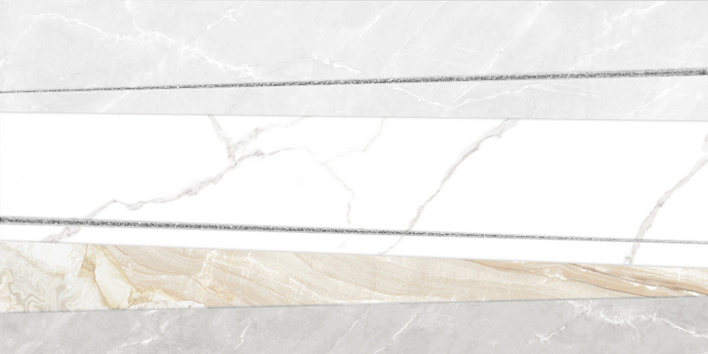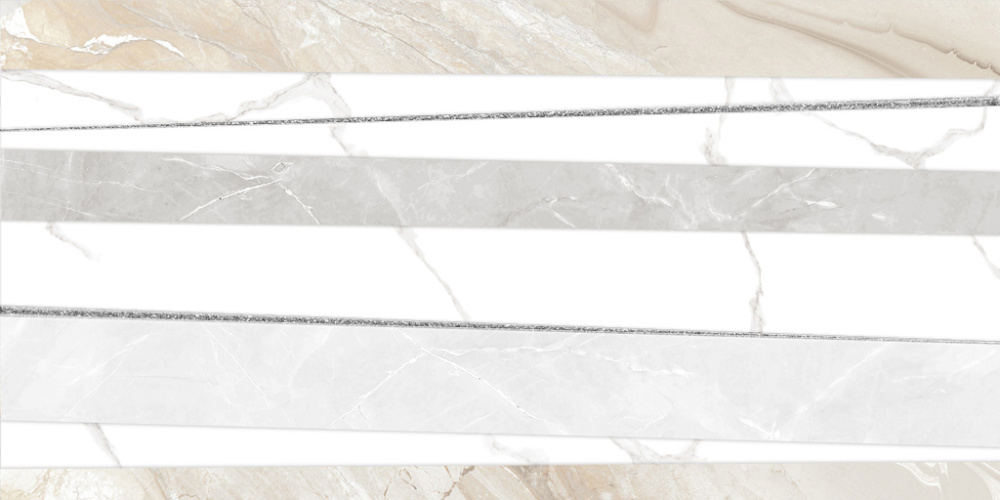 Глянцевая поверхность имеет рисунок под мрамор, в полоску. Эта плитка применяется для декорирования стен внутренних помещений: ванной, туалета.