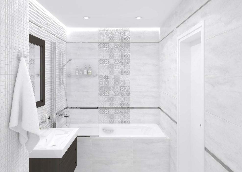 Базовая настенная плитка Concrete от Laparet предложена в трех «бетонных» оттенках: темно-сером, сером и бежевом цвете. Компаньонами гладкой керамике станут рельефные модули с волнообразным рисунком в виде песчаных дюн темно-серого и бежевого цвета.Среди декоративных вставок вы найдете мозаичный декор серого цвета Modul с орнаментированными чипами. Рисунок для них был выбран из узнаваемых майоличных мотивов. Подобным образом оформлены и три декора Vimp с орнаментом в стиле «пэчворк» из тех же майоличных принтов.Ноту индустриального шика привнесут декоры Trigger, украшенные серебристыми и золотистыми полосками. В эту коллекцию была включена и традиционная монохромная мозаика 30х30 см