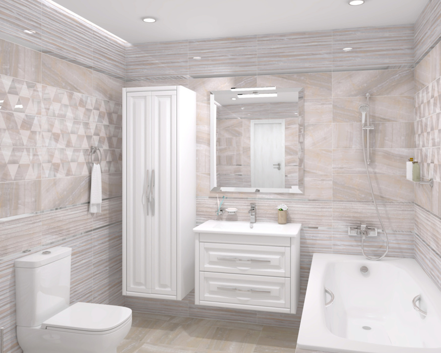 Глянцевая поверхность имеет рисунок под камень. Эта плитка применяется для облицовки стен внутренних помещений: ванной, туалета.