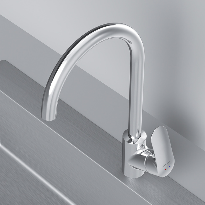 Максимальный комфорт: плавное вращение поворотного излива в любом направлении обеспечивает непревзойденное удовольствие от использования и удобство в работе на кухне.