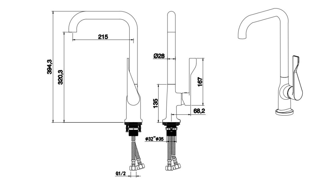 • оснащен высоким изливом, удобен для мытья крупных предметов
