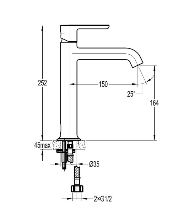 • Рабочий интервал давления в водопроводной сети: 0,5-6,0 Атм