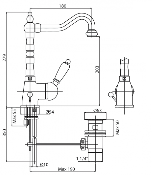 • Цвет ручки: хром • Материал: латунь • Длина излива: 18 см • Оснащение: донный клапан, аэратор • Дополнительная информация: поворотный излив • Рабочий интервал давления в водопроводной сети: 0,5-6,0 Атм