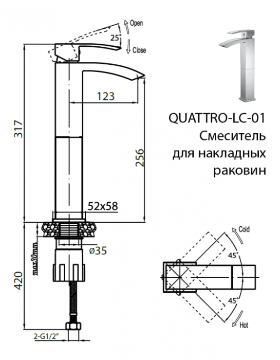 • Управление: однорычажное • Отверстия для монтажа: на 1 отверстие • Механизм: керамический картридж • Стандарт подводки: 1/2 • Тип подводки: гибкая