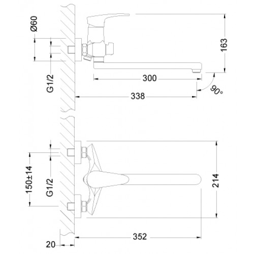 Аксессуары в комплекте: шланг 1,5 м, настенное крепление, 1-функциональная лейка Ø100 мм