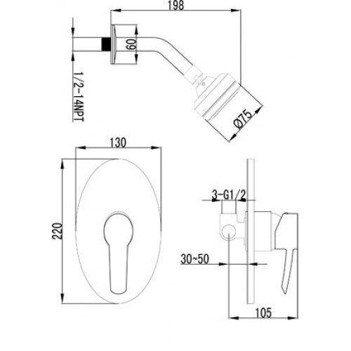 Эко-картридж Sedal 35 мм. 1-функциональный встраиваемый душ Металлическая рукоятка