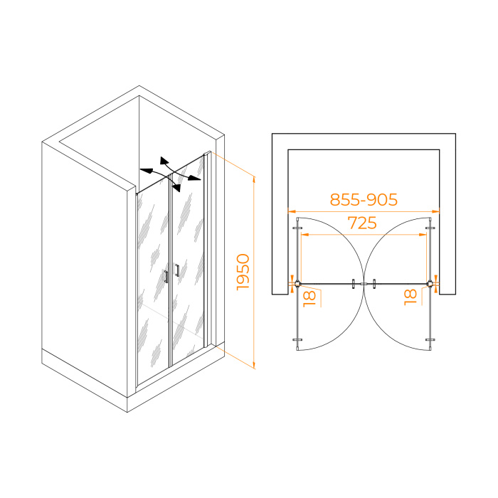 • Размеры с диапазоном регулировок:855-905