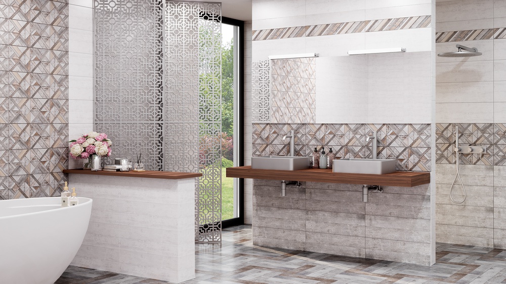 Стильная коллекция с имитацией состаренного дерева разных оттенков. «Деревянный микс» с проработкой тончайших характерных шероховатостей, трещинок и неровностей придают убедительность и сохраняют очарование и атмосферу времени. Декоративные элементы с графическим рисунком, напоминающим легкую, ажурную резьбу по дереву, задают эстетическую составляющую будущего интерьера.