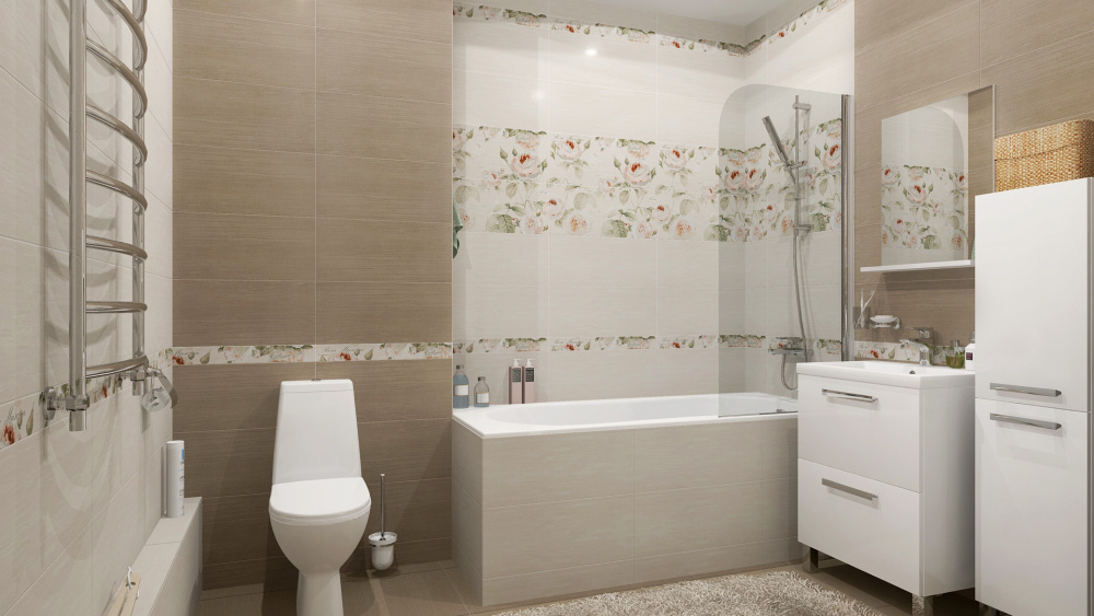 Утонченное обаяние французского Прованса не оставит равнодушным каждого, кто однажды увидел ванную комнату в стиле Garden Rose. Настоящий райский сад для романтичных натур помогут создать нежные декоры с изображением мускатных роз и едва уловимыми, словно воздушный поцелуй, надписями. Фактура плитки имеет легкий рельеф, имитирующий фактуру дерева. Светлый теплый оттенок основы и темный «древесный» цвет цоколя повторяются в напольной плитке. Ее можно успешно комбинировать, чтобы получить эффект «шахматного» пола.