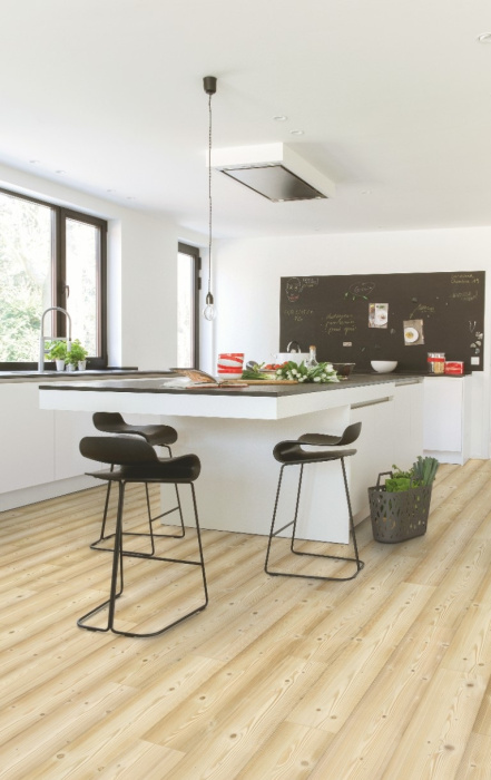 Попрощайтесь с проблемами залива водой, выбрав водостойкий пол Quick-Step. Эти полы имеют исключительно стильный и естественный вид, а также на 100% устойчивы к влаге, поэтому их очень легко чистить!