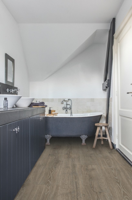 Попрощайтесь с проблемами залива водой, выбрав водостойкий пол Quick-Step. Эти полы имеют исключительно стильный и естественный вид, а также на 100% устойчивы к влаге, поэтому их очень легко чистить!