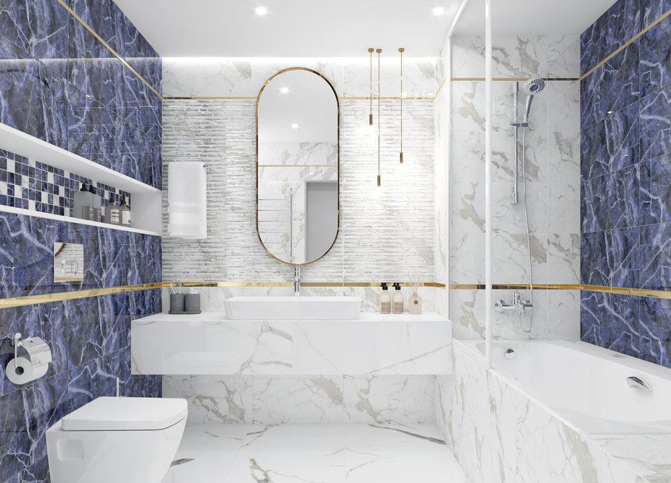 Поверхность имеет рисунок под мрамор. Эта плитка применяется для: ванной, туалета.