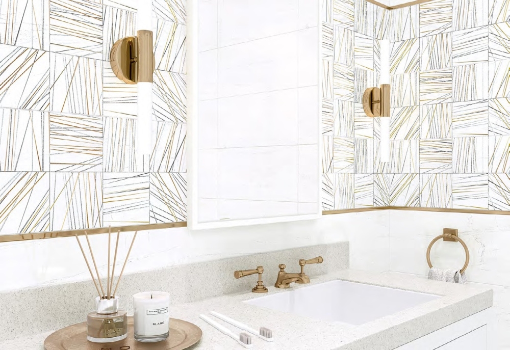Глянцевая поверхность имеет рисунок под камень. Эта плитка применяется для декорирования стен внутренних помещений: ванной, туалета.