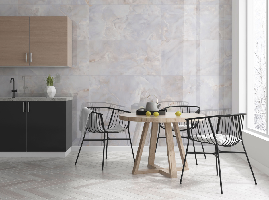 Коллекция Onyx приковывает взгляд цветовой гаммой и характерным для этой породы рисунком. Хотя условно он назван белым, но на самом деле представляет собой смешение нескольких пастельных оттенков – кремового, розовато-серого, зефирно-голубого и зеленоватого, что порождает непередаваемую игру переходов от одного цвета к другому. Оникс имеет слоистую структуру, но слои и прожилки не ярко выражены, словно скрыты туманной дымкой. Поэтому он выглядит значительно нежнее и романтичнее, чем бескомпромиссный мрамор. Коллекция керамогранита Onyx отлично подходит для отделки ванных, кухонь, спален и столовых, там, где его умиротворяющая мягкость позволит расслабиться и отдохнуть.