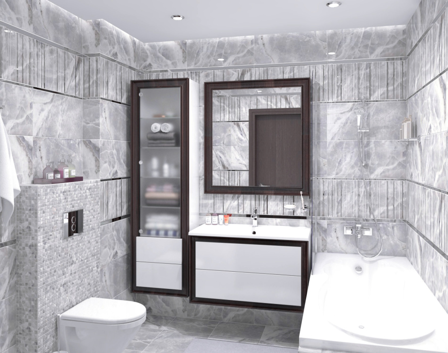 Базовая настенная плитка Plazma от Laparet предложена в гамме из белых, серых и зеленых оттенков. Мраморная структура имеет довольно активный, насыщенный прожилковый рисунок, поэтому крупноформатные модули могут использоваться совсем без декоров и при этом интерьер не будет скучным, но всё же дизайнеры включили в линейку ассортимент декораций.Вставки Avers оформлены орнаментом из треугольников, некоторые из которых проработаны серебристой и золотистой глазурью. Декоры Nuance украшены скромным узором-сеткой с ячейками «арабский четырехлистник».