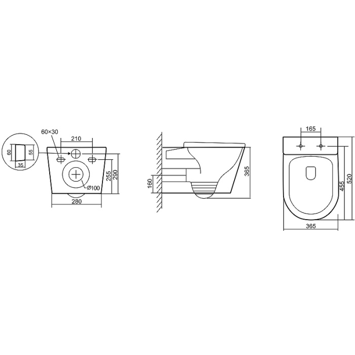 Унитаз подвесной Triton-Pro Verso VO-0832, сиденье, фурнитура
