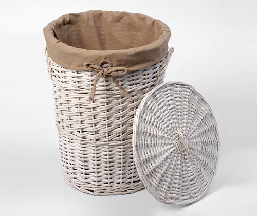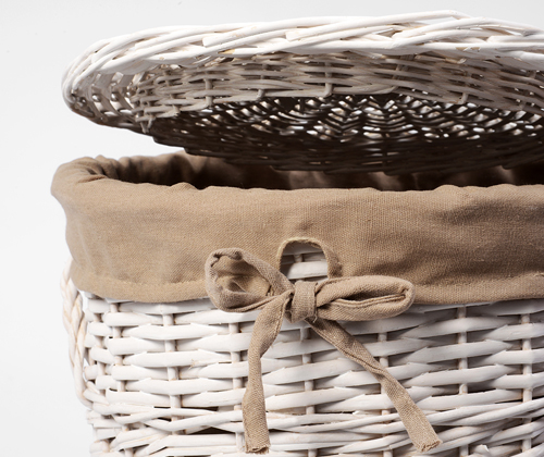 Характеристики: Водоотталкивающее покрытие Съемный хлопковый чехол Цвет: корзина - белый, чехол - бежевый Материалы: Прутья ивы
