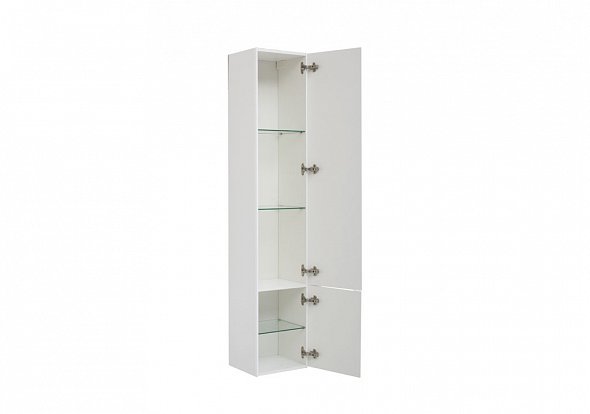 Шкаф-пенал для ванной Aquanet София 35 белого цвета обращает на себя внимание детальной продуманностью всех мелочей. Простая форма прямоугольника - в самой основе подвесного изделия, элегантно закругленные углы - для эстетичности и в целях безопасности, просторная зона хранения, которая, несомненно, порадует рачительных хозяев. Для исполнения корпуса изделия использован влагостойкий ЛДСП, выкрашенный белой краской, фасады - из МДФ, внутренние ящики - ВЛДСП в цвете дуб сонома. Глянцевые поверхности выглядят безупречно. Конструкция внутреннего устройства шкафа шириной 35 см и высотой 175 см предельно проста: две зоны хранения, скрытые каждая за своей дверкой, причем, полки верхнего отделения, а их три, больше по высоте, чем две - в нижнем отсеке шкафчика, что позволит грамотно распределить вещи для хранения в зависимости от их габаритов. Интегрированные ручки удобны в использовании, при этом выглядят элегантно и лаконично.