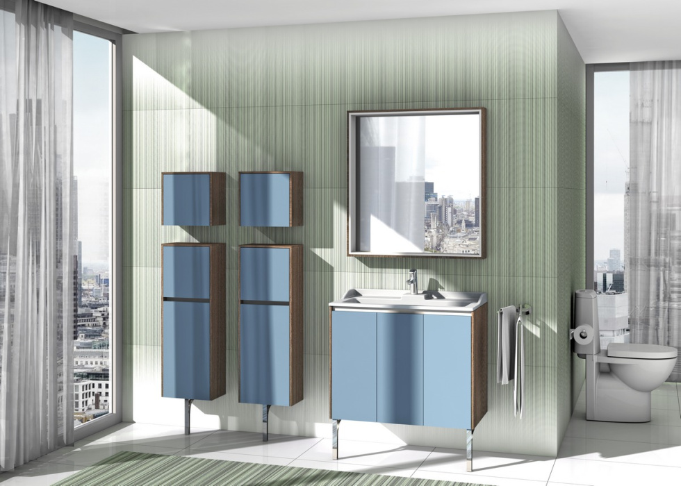 Дополнительные системы хранения – шкафы различной конфигурации. Это как небольшие кубики (шкаф подвесной) со створками, которые можно компоновать по своему желанию, так и более вместительные шкафы, поделенные на две секции. В нижней части такого шкафа установлена стеклянная полочка.