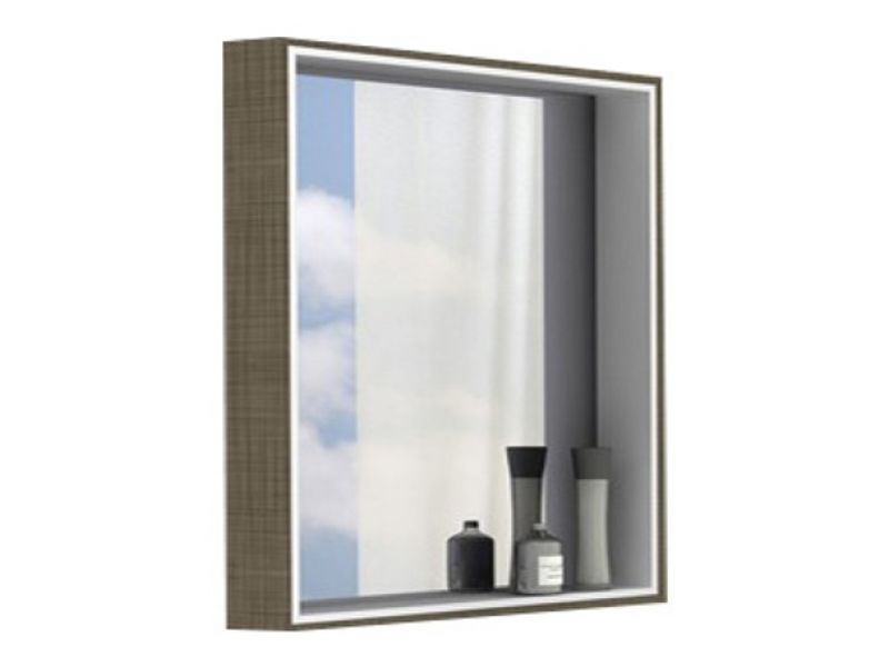 Корпус зеркала, также как и корпуса остальных изделий коллекции, имеет двойную конструкцию. Зеркало оснащено подсветкой. Светильник итальянского производства снабжен сенсорным выключателем, встроенным под стекло, закрывающее светящуюся LED-ленту и имеющее специальное матовое покрытие, обеспечивающее равномерное свечение. Включение и выключение световой линейки происходит плавно по нарастающей.