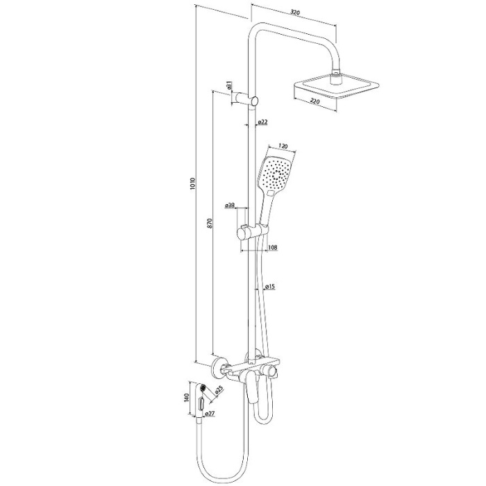 • Душевой шланг: 1500 мм с защитой от перекручивания.
