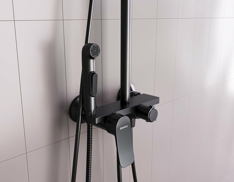 Коллекция черных душевых систем Apollo – прорывной продукт с мультифункциональными способностями. Смеситель-полочка для любимых средств, многорежимный излив для ванны, гигиенический душ и традиционные широкие ручной и верхний души – целый комплекс для комфортного spa-ухода. Стиль: сочетание множества аксессуаров душевой системы и трендового черного матового цвета по истине станут стильным атрибутом вашей ванной комнаты.
