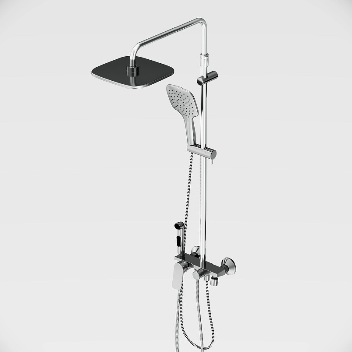 В комплекте поставки: Смеситель,штанга с креплением,верхний душ,ручной душ с держателем,шланг для ручного душа.держатель штанги.