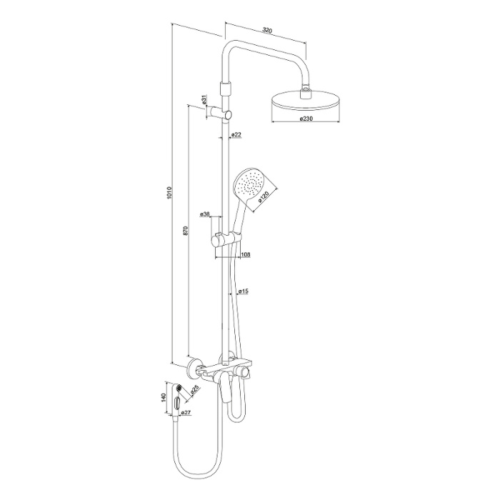 • Душевой шланг: 150 см с защитой от перекручивания.